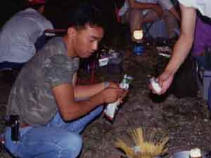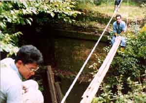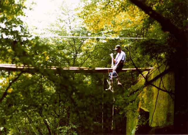 橋の上にロープを一本張り、これに命綱を結んで渡る。 希望者全員が記念に渡った後、現状復帰の為橋は撤去された。