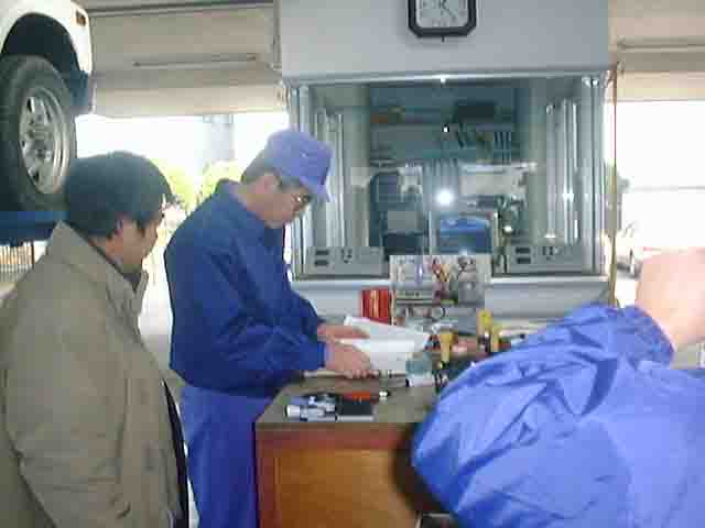 予備車検場のお兄さんの協力も得て、試行錯誤するも光量は上がらず。