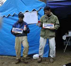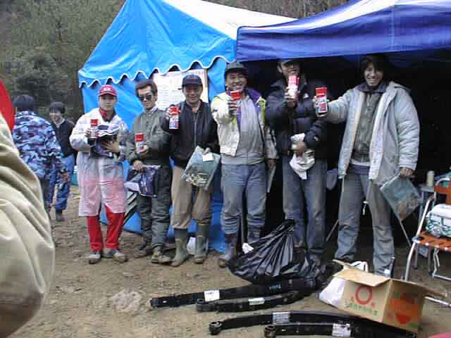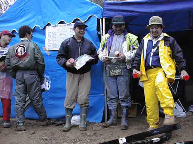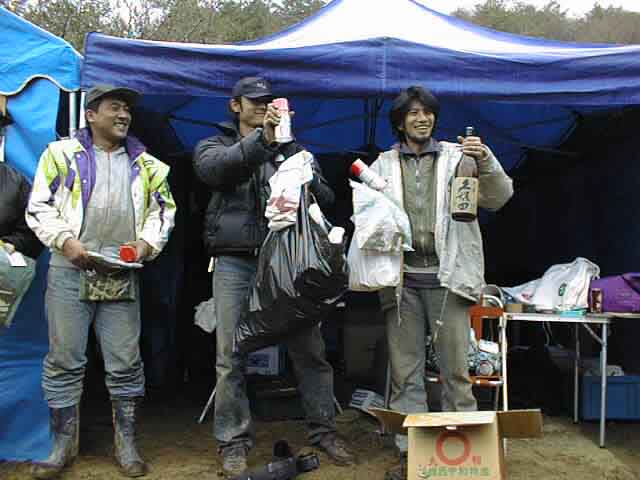 総合クラス4位の増原・小林組。帰り道で増原氏が「ほんま面白かった」とにこにこしながら言っていたのが印象的だった。しかし、なんで日本酒握ってんだ?尚、小林氏が持っているポリ袋はビリの組のバツゲームのゴミである。
