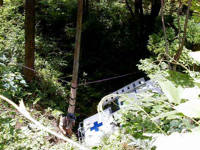 3セクでのチームトップレンジャーこと多治見・勝股組。 ここはウインチダウンなので、Uターンの後ウインチで降下していく、。