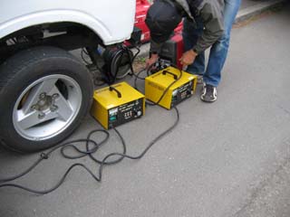 右バンクと左バンクを2系統のコンセントから別々に充電させて頂けたので2時間程だったが結構充電できた。