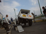 トラックの荷台に荷物を積み、準備が整ったのが本番5分前。